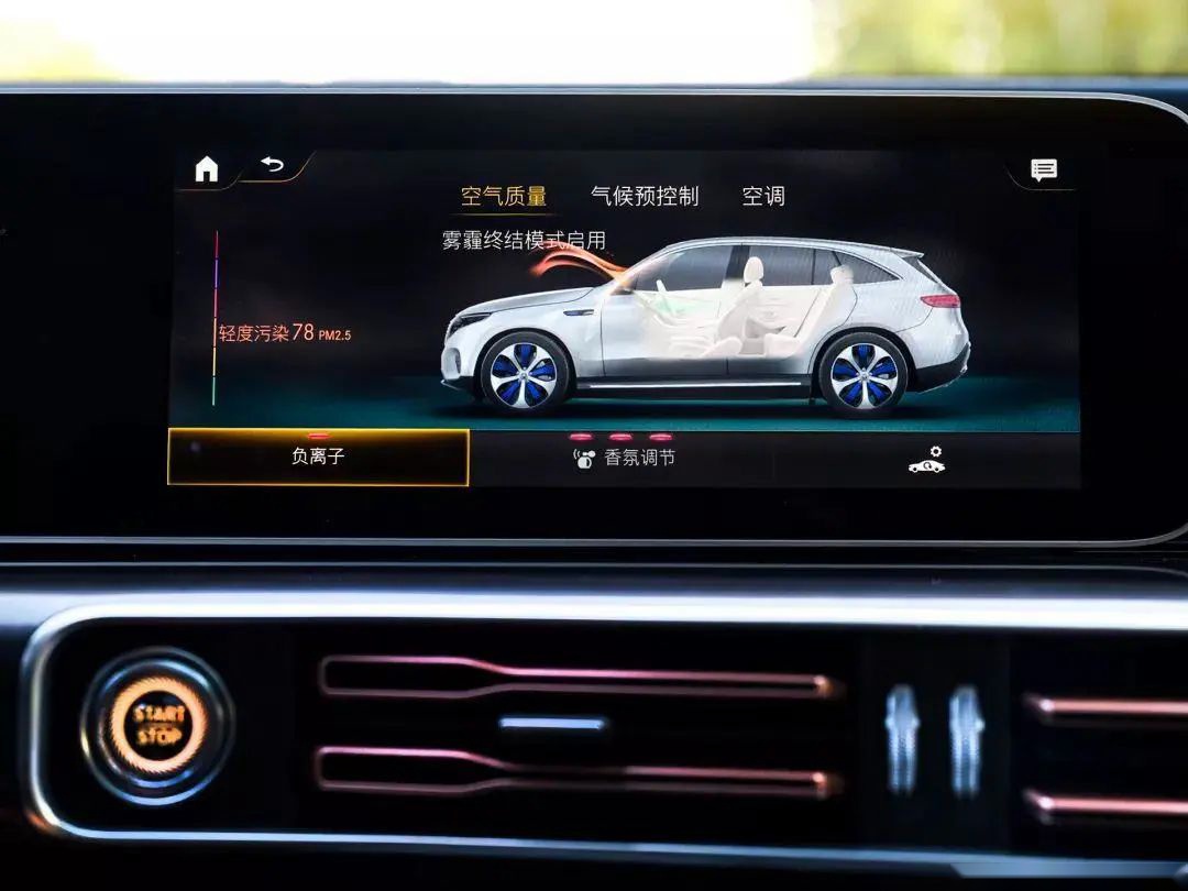 在传统驾控层面,EQC为每根车轴都安装了电机驱动系统,实现了智能全时四驱。同时因为前后桥异步电机的动力设置,使其拥有300千瓦的上限功率,即便在接近2.5吨的车重之下,依然可以爆发出5.1秒破百的加速成绩,这在燃油车里几乎是不敢想象的,而415公里的续航表现也属于纯电SUV里的主流标准,足以应对大部分出行需求。