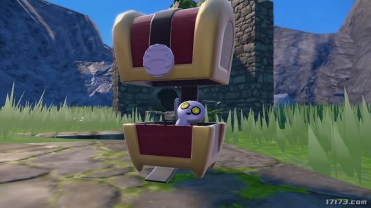 另一个新的鬼魂类型的口袋妖怪索财灵Gimmighoul。Gimmighoul有两种不同的形式。在盒子宝箱形式中,小口袋妖怪会躲在装满硬币的宝箱中;在周游形式中,Gimmighoul会在宝箱外自在走动。